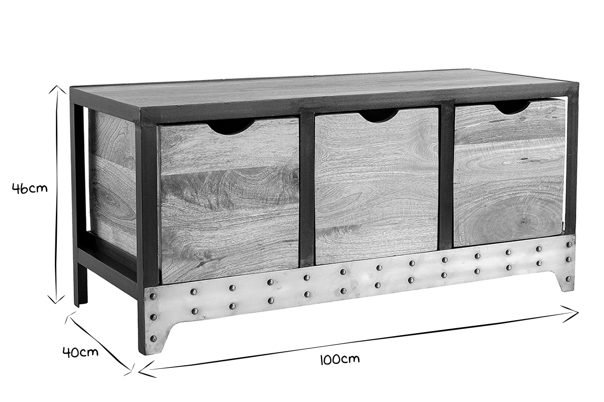 Mebel wyposażono w trzy duże szuflady (L28 × G40 × H31 cm), idealne do przechowywania różnych przedmiotów — od dokumentów, przez akcesoria domowe, aż po obuwie, jeśli zechcesz wykorzystać go jako szafkę na buty. Dzięki kompaktowej formie mebel doskonale odnajdzie się w przedpokoju, salonie, biurze czy pokoju młodzieżowym.