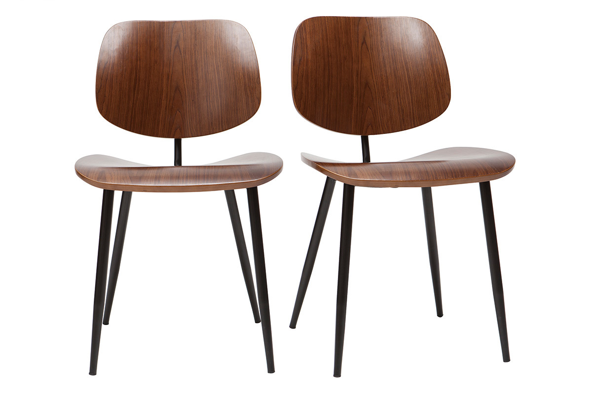 Krzesła z ciemnego drewna orzechowego i czarnego metalu (zestaw 2 szt.) TOBIAS