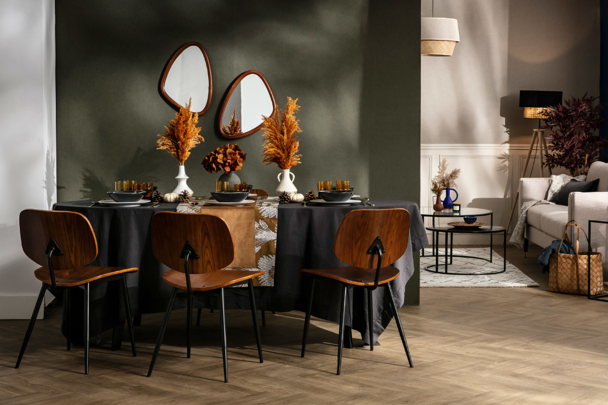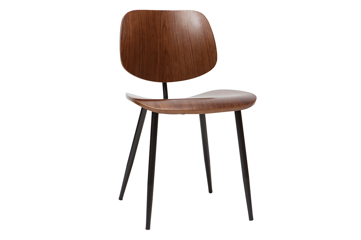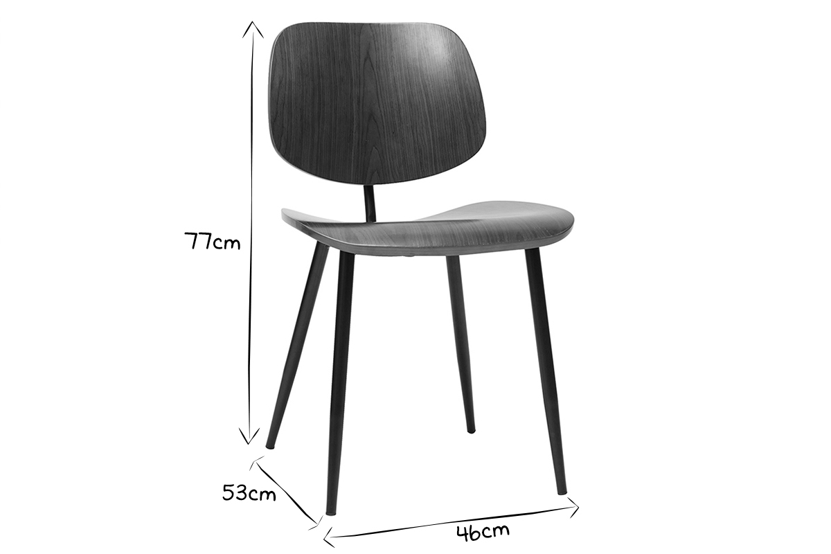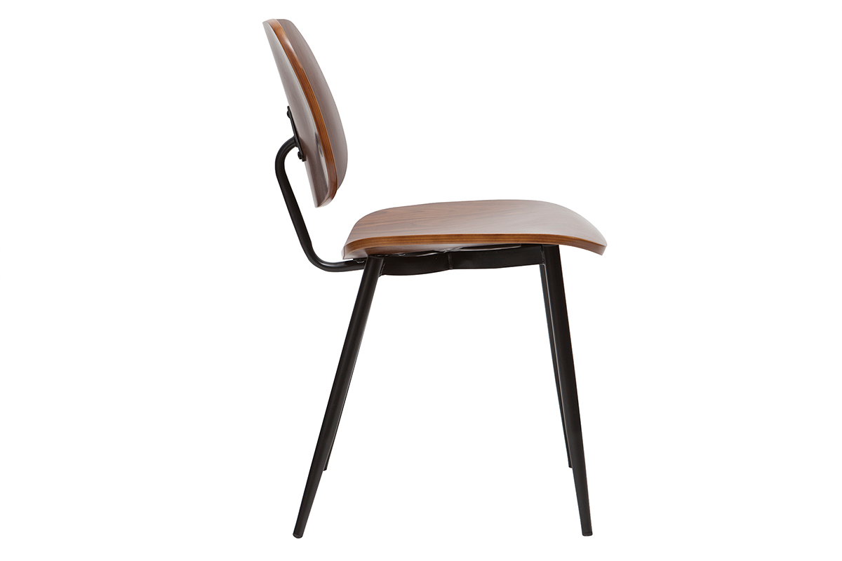 Model TOBIAS wykonany jest z giętej sklejki o wykończeniu w kolorze orzecha oraz czarnej, metalowej podstawy, co zapewnia trwałość i wytrzymałość na lata. Szerokie oparcie oraz profilowane siedzisko gwarantują wygodę podczas codziennego użytkowania. To krzesła, które subtelnie podkreślą charakter jadalni, kuchni lub biura, nadając przestrzeni ciepła i elegancji.