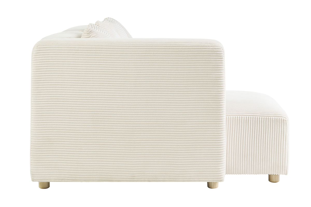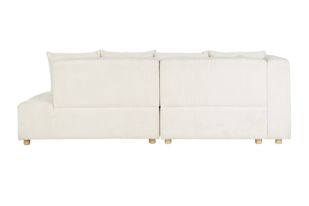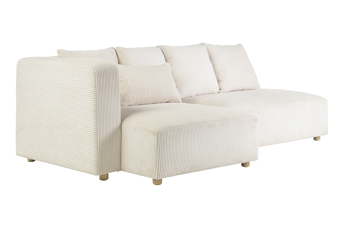 Mimo swojej elegancji narożnik HARLEM pozostaje przede wszystkim meblem stworzonym do odpoczynku. Jego duże wymiary (L229 × P91–125 cm) umożliwiają wygodne ułożenie się kilku osób jednocześnie. Lewostronna część wypoczynkowa o długości 125 cm oferuje idealne miejsce na popołudniową drzemkę, moment relaksu lub wieczór filmowy. W zestawie znajduje się pięć miękkich poduszek, dzięki którym każdy może dopasować swoje oparcie tak, jak lubi najbardziej.