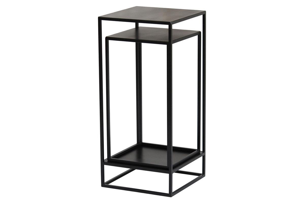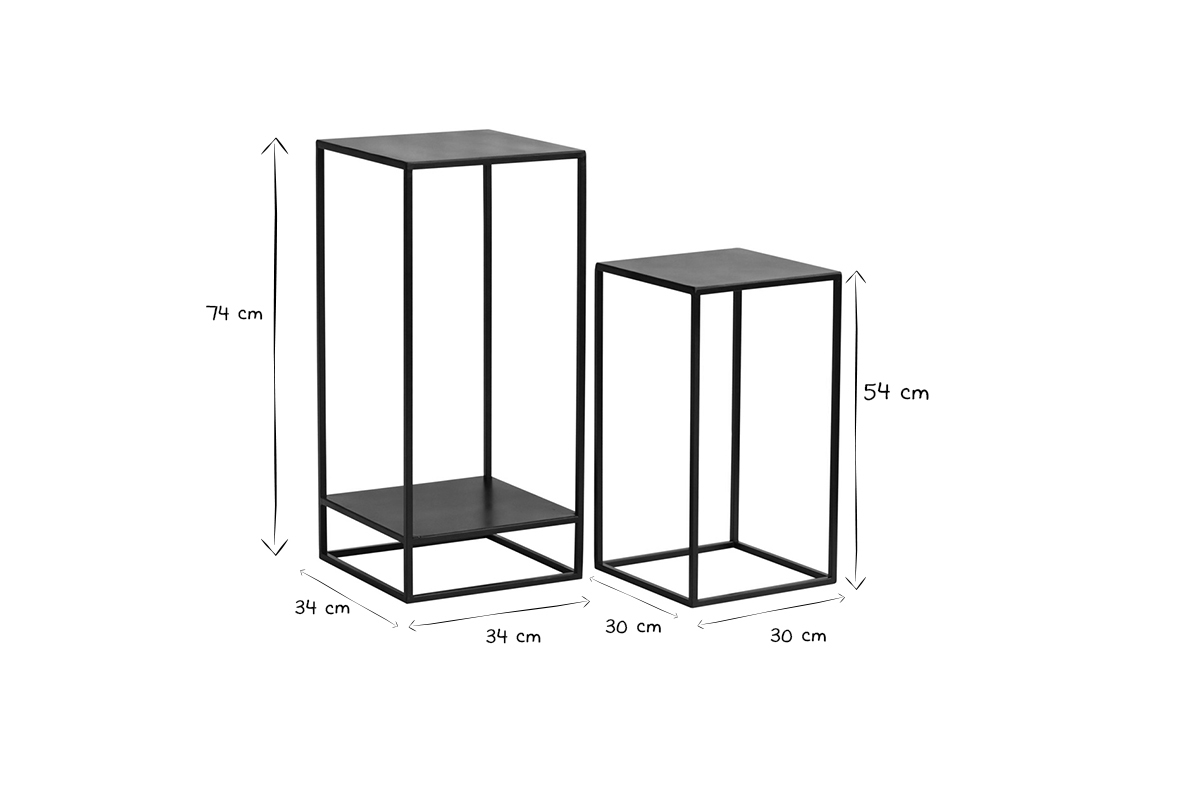 Ten zestaw dwóch stolików wykonanych z czarnego metalu wyróżnia się lekką, delikatną konstrukcją i solidnymi blatami. Ręczne wykonanie nadaje im surowy urok i wyjątkową osobowość. Ich minimalistyczny styl pozwala im harmonijnie wtopić się w każdą aranżację, podkreślając piękno wyeksponowanych przedmiotów.